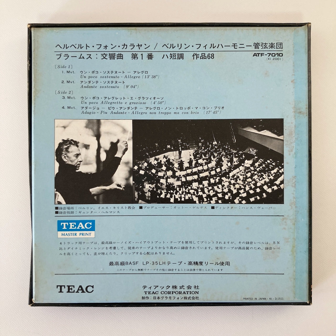 オープンリールテープ / ヘルベルト・フォン・カラヤン / ブラームス:交響曲第1番 / 7号 19cm/s (7 1/2IPS) 4トラック 日本盤 ライナー / DGG