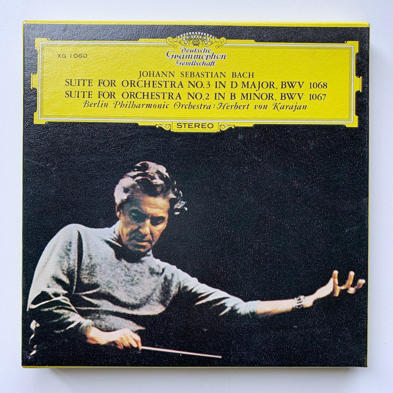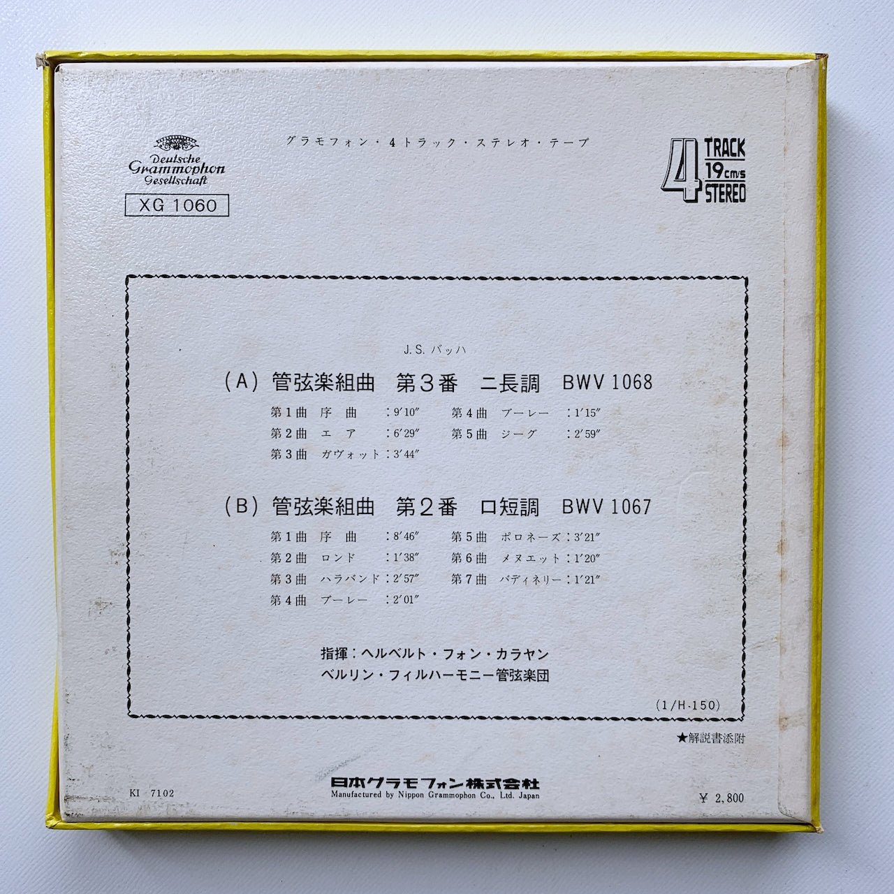 オープンリール/ ヘルベルト・フォン・カラヤン / J.S.バッハ:管弦楽組曲第3番、第2番 / 国内盤 7号 4トラック 19cm/s (7 1/2IPS) ライナー DGG XG1060