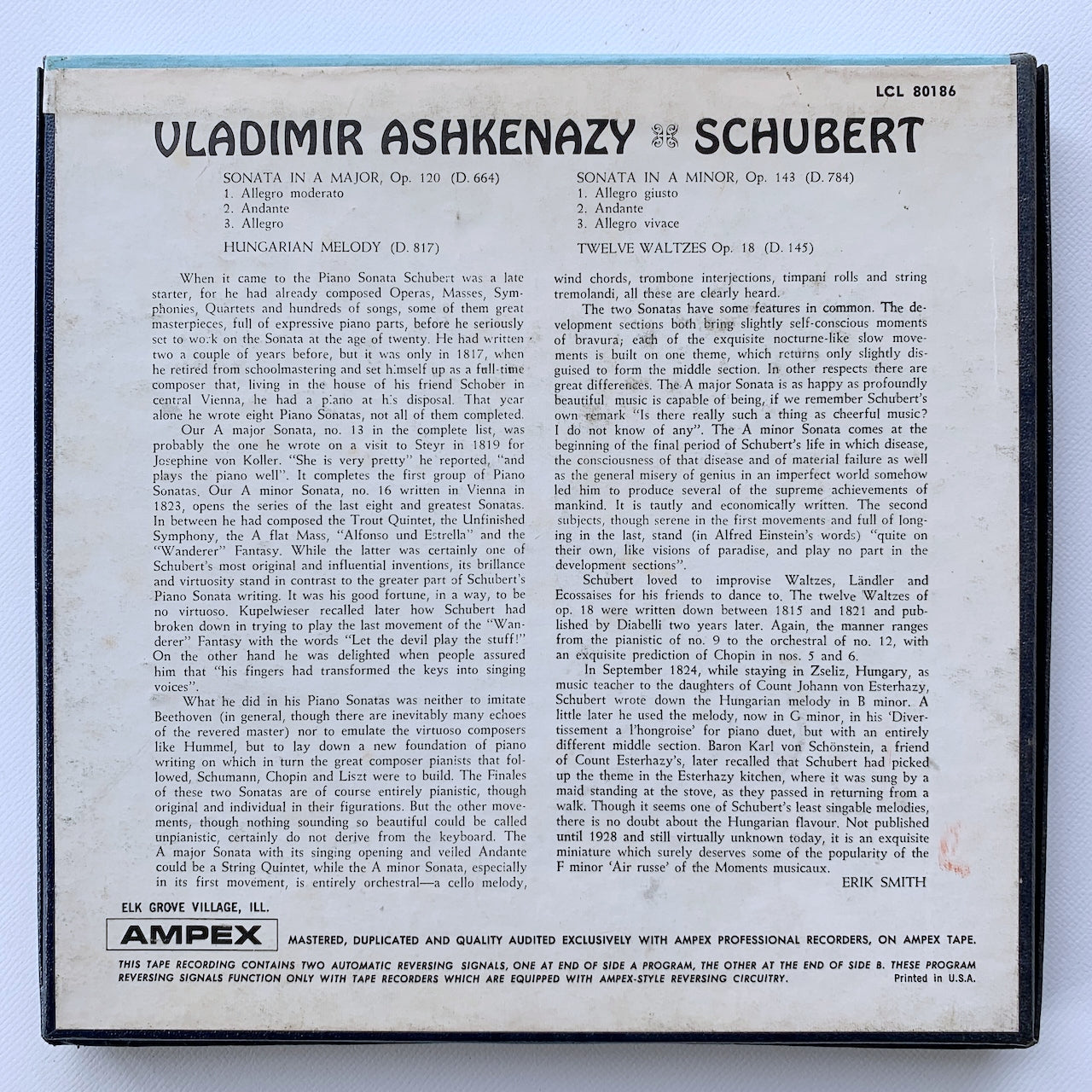 オープンリール/ ウラディーミル・アシュケナージ / シューベルト:ピアノソナタ第13番 他 / US盤 7号 4トラック 19cm/s (7 1/2IPS) LONDON LC80186