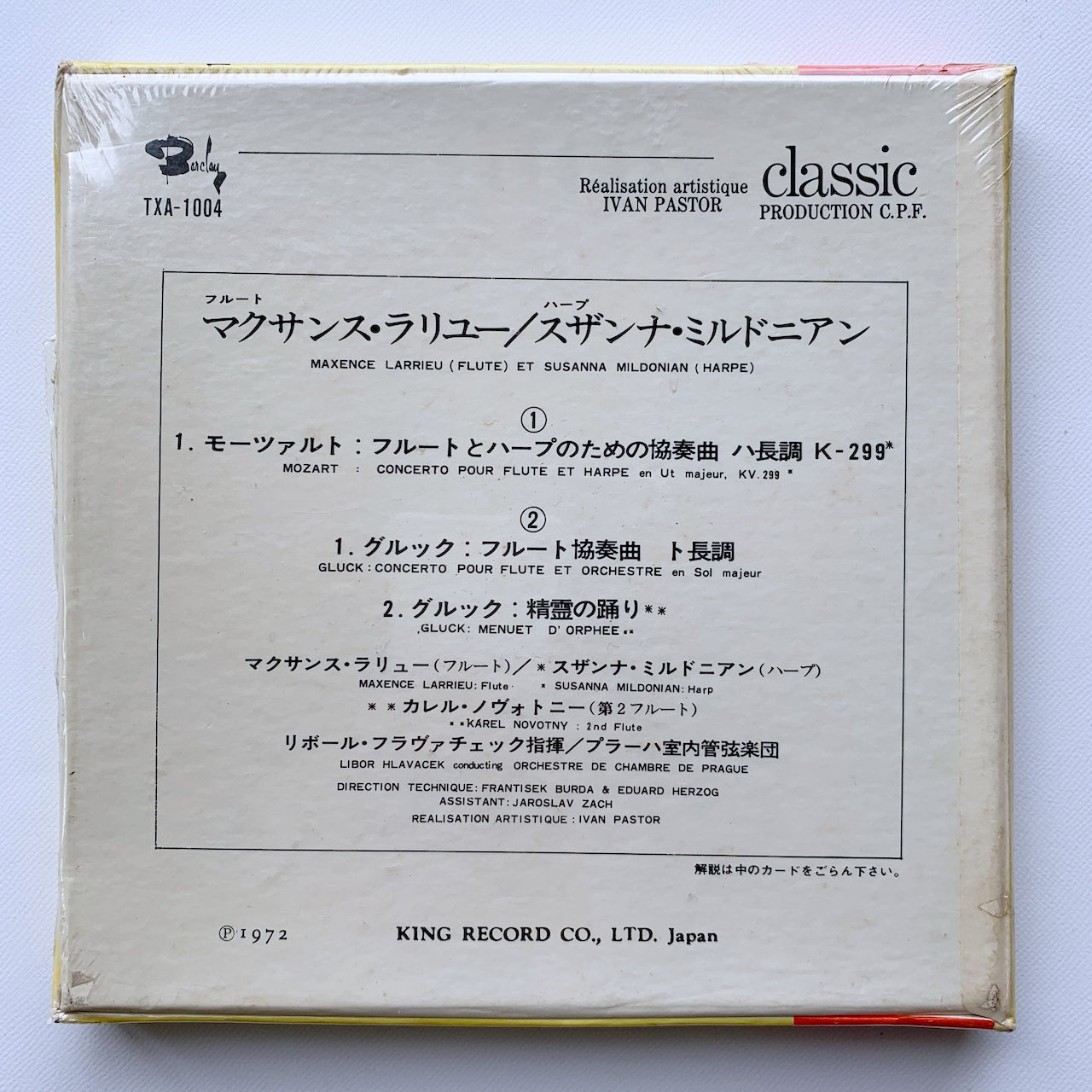 【未開封】オープンリール/ ラリュー、ミルドニアン / モーツァルト:フルートとハープのための協奏曲 他 / 国内盤 7号 4トラック 19cm/s (7 1/2IPS) 帯 KING TXA-1004