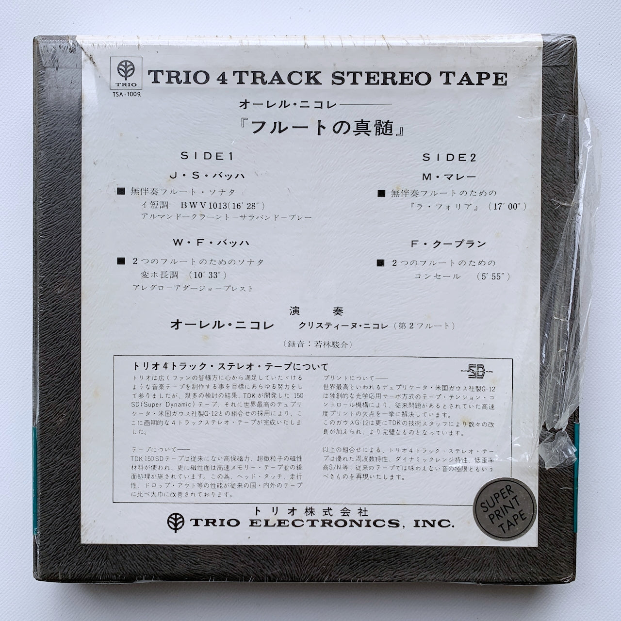【未開封】オープンリール/ オーレル・ニコレ / フルートの真髄 J.S.バッハ:無伴奏フルート・ソナタ 他 / 国内盤 7号 4トラック 19cm/s (7 1/2IPS) 帯 TRIO TSA-1009