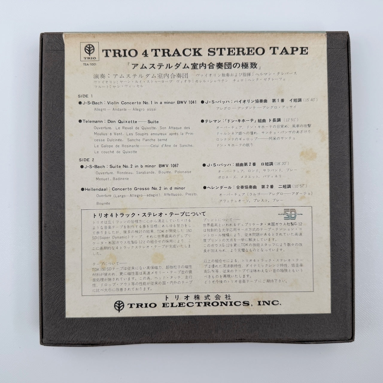 オープンリール/ アムステルダム室内合奏団 / J.S.バッハ:ヴァイオリン協奏曲第1番 他 / 国内盤 7号 4トラック 19cm/s (7 1/2IPS) ライナー TRIO TSA-1001 27170