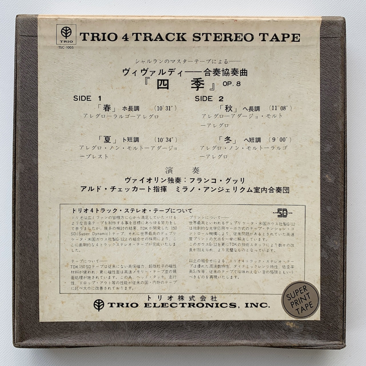 オープンリール/ ミラノ・アンジェリクム室内合奏団 / ヴィヴァルディ : 協奏曲集「四季」 / 国内盤 7号 4トラック 19cm/s (7 1/2IPS) ライナー TRIO TSC-1005