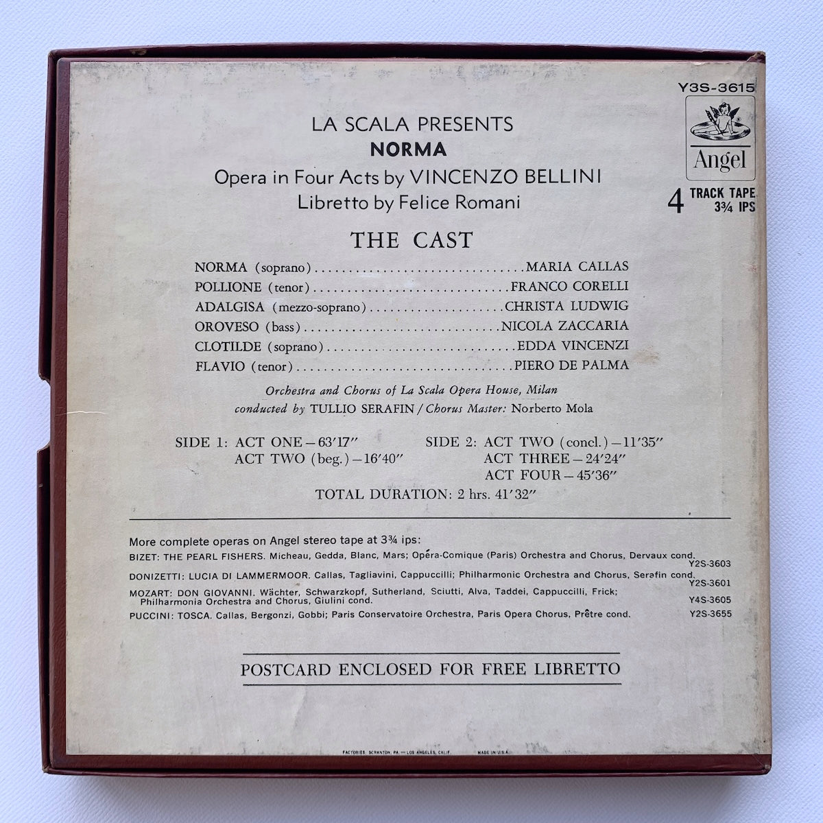 オープンリール/ マリア・カラス / ベッリーニ:歌劇「ノルマ」 / US盤 7号 4トラック 9.5cm/s (3 3/4IPS) ANGEL Y3S-3615