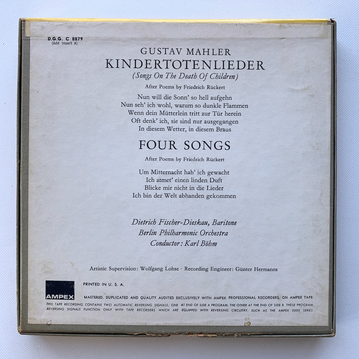 オープンリール/ ディースカウ、ベーム / マーラー:歌曲集「亡き子をしのぶ歌」他 / US盤 7号 4トラック 19cm/s (7 1/2IPS) インサート DGG C-8879